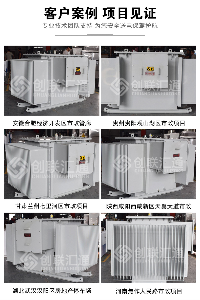 型接成693V或”D”型接成400V供電,在電纜接線盒內直接裝次級端頭引出六個瓷套供用戶改接變壓器吊裝利用焊在箱壁的吊攀,變壓器箱底均裝有拖撬,在拖撬上備有安裝孔,可供礦并需要時加裝礦車滾輪。